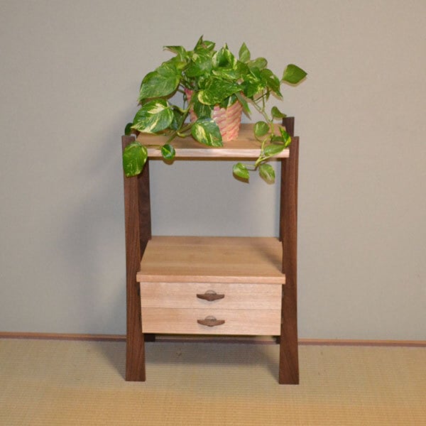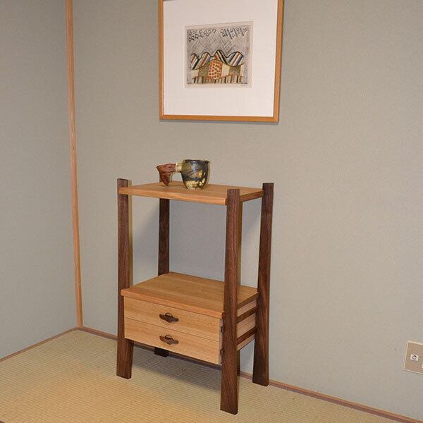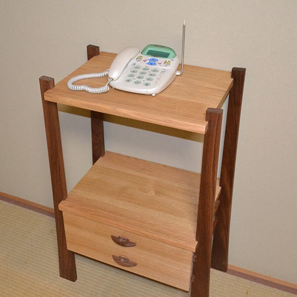 飾り棚としてデザインした品ですが、電話台、オーディオ、花台と、