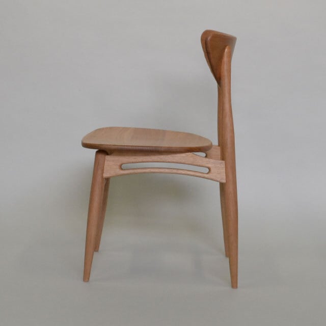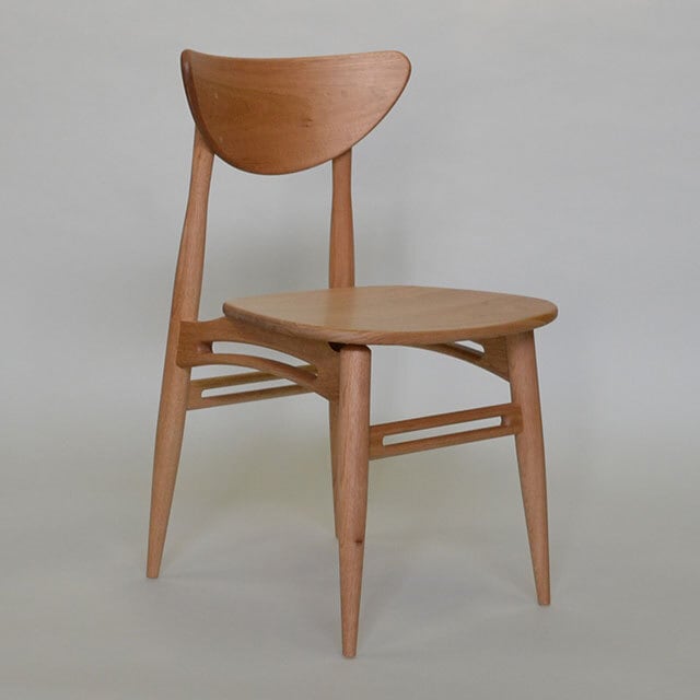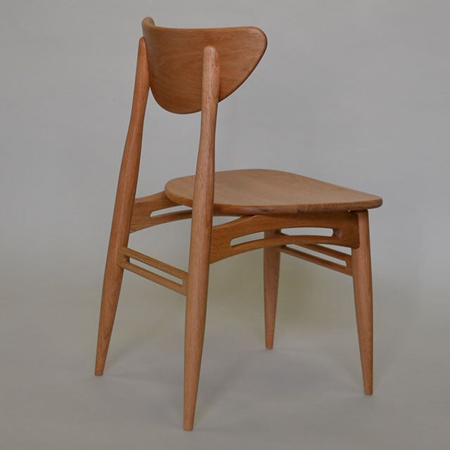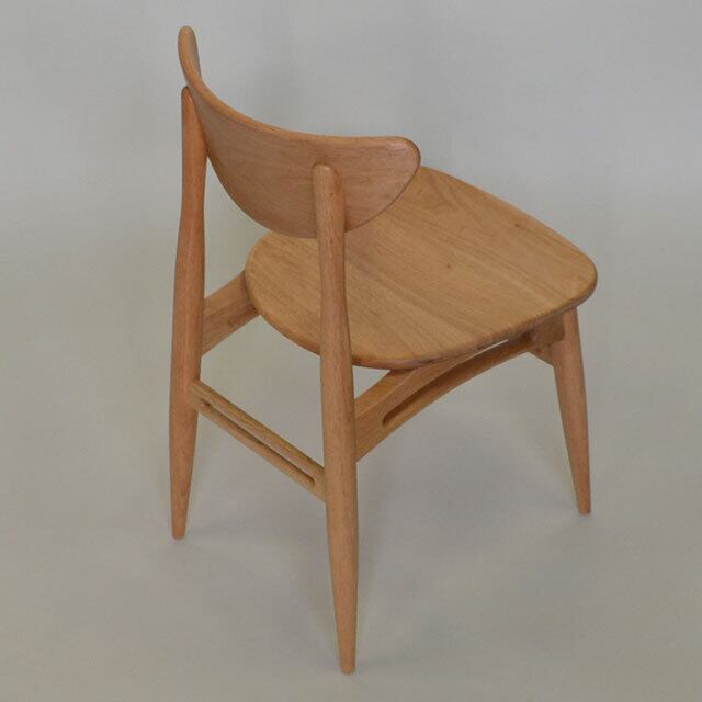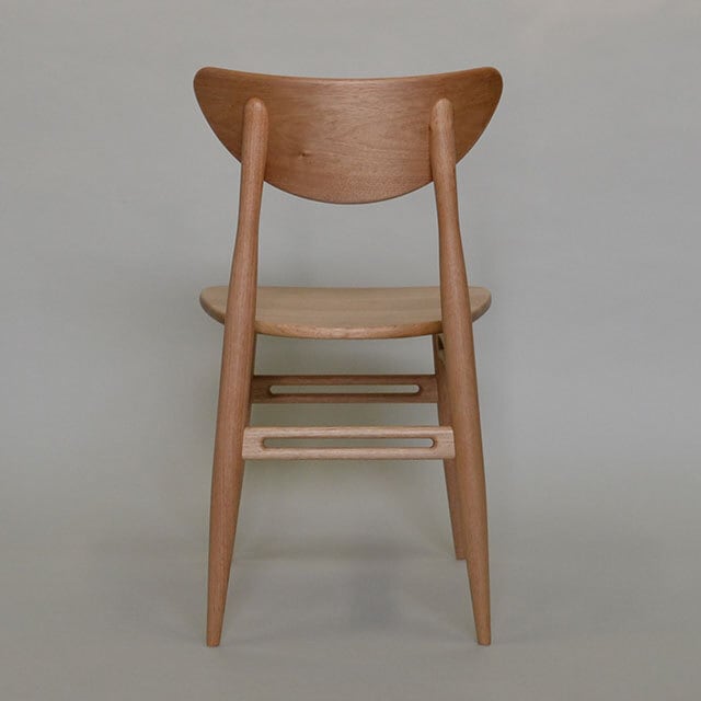 蒸気で曲げた背もたれが体を心地よくホールドし、ぜい肉をそぎ落とした脚回りのデザインがとても素敵です。軽く粘りある胡桃材を使用しているので軽量なため出し入れが大変楽です。