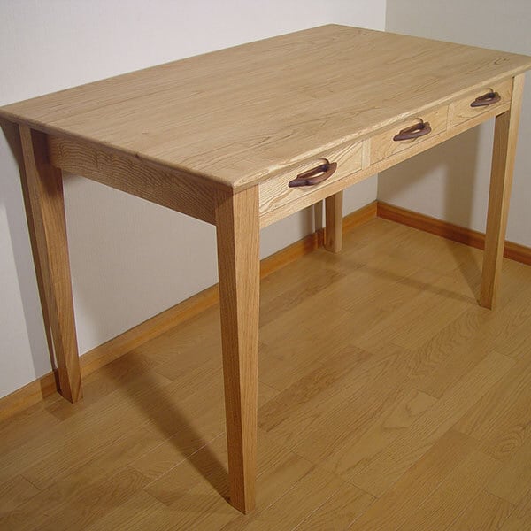 定番学習机06シリーズの中で幅110㎝と大きめのタイプです。非対称の引き手を採用し、無垢材の優しい木目と質感の良いお勧めの学習デスクです。3杯の抽斗は収納力もあり、お子様の勉強机として、大人のデスクとして幅広くご利用いただけます。