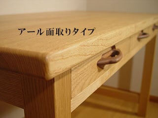 材質は胡桃・栗からお選び頂け、天板のデザインにはアール面取り加工と角面取り加工の2タイプをご用意しております。