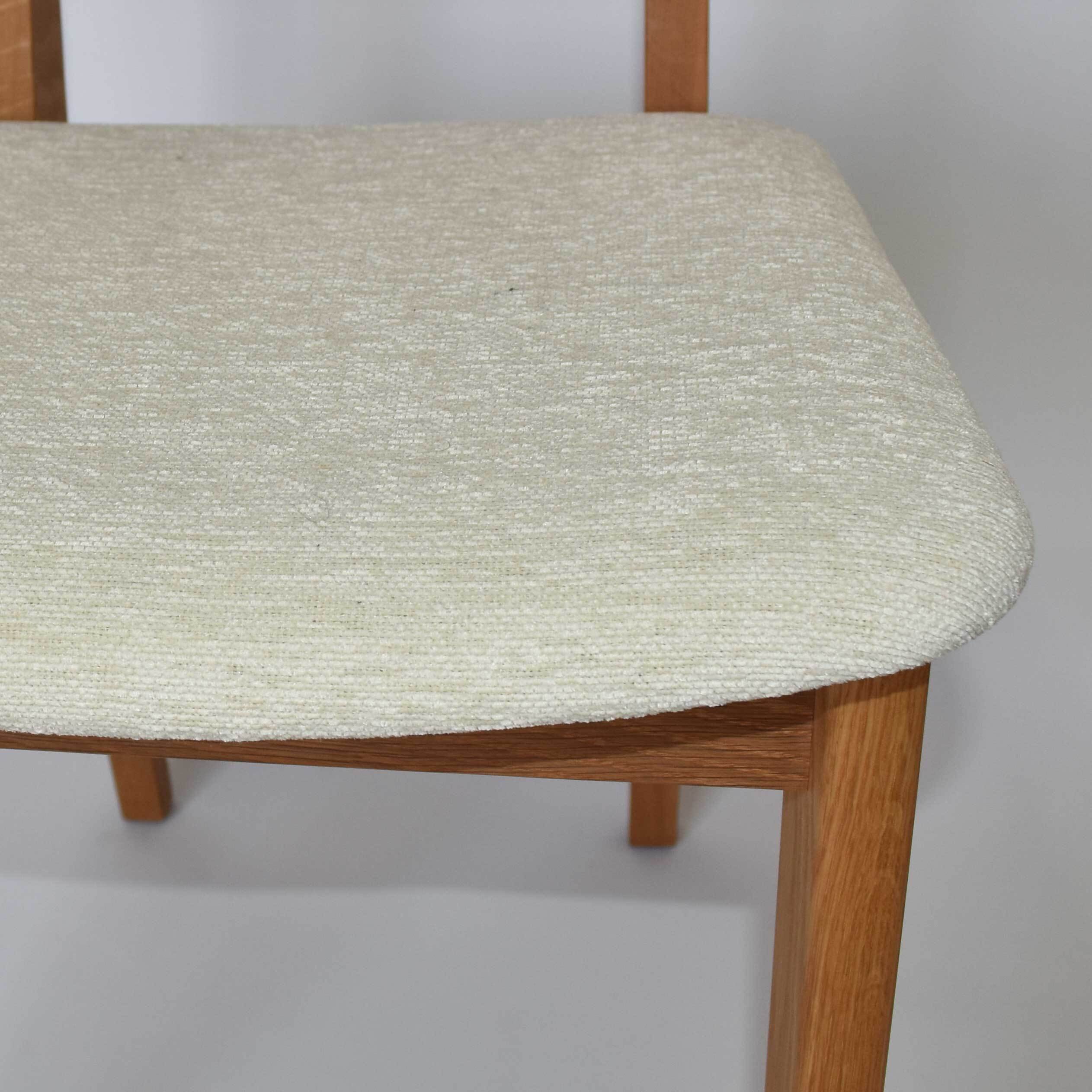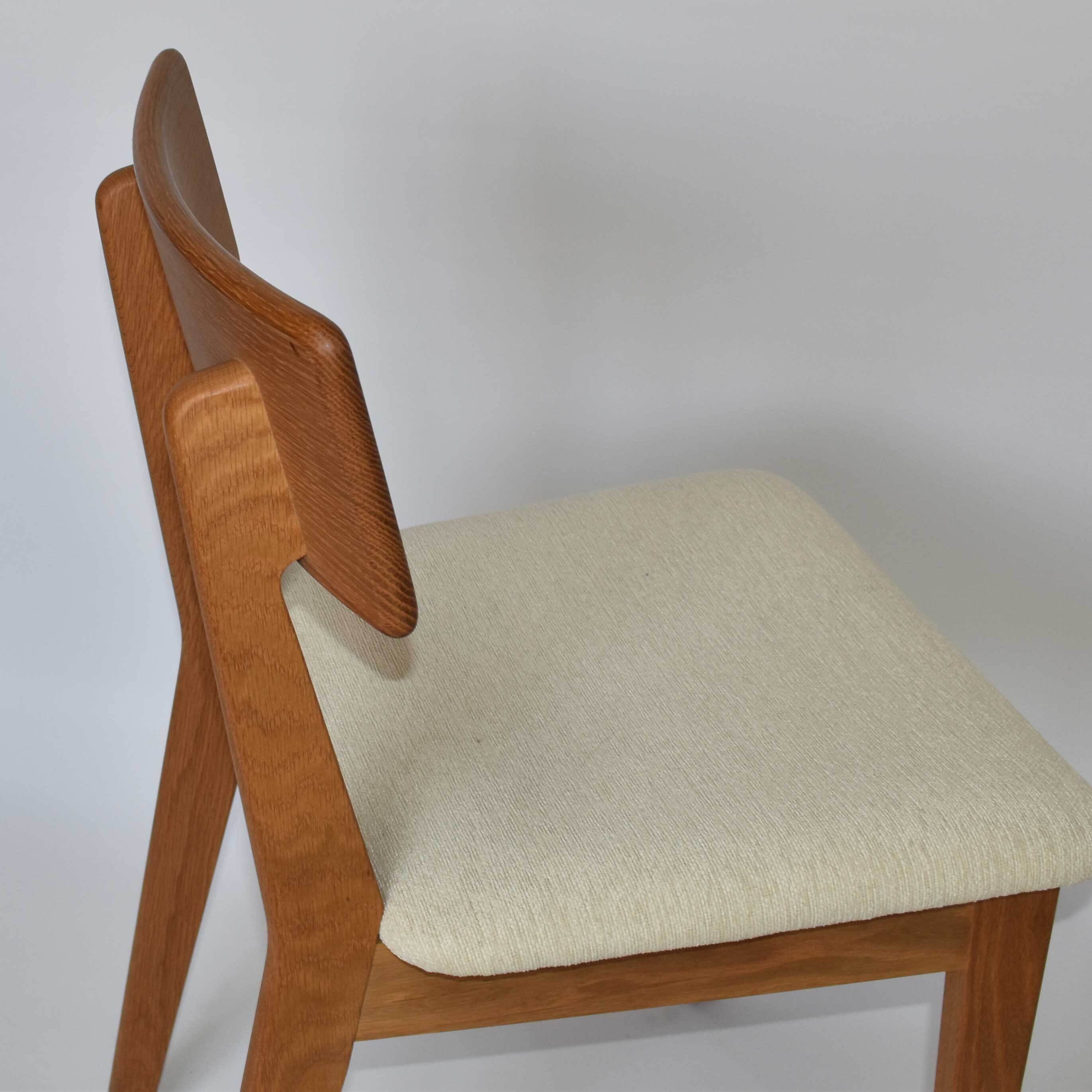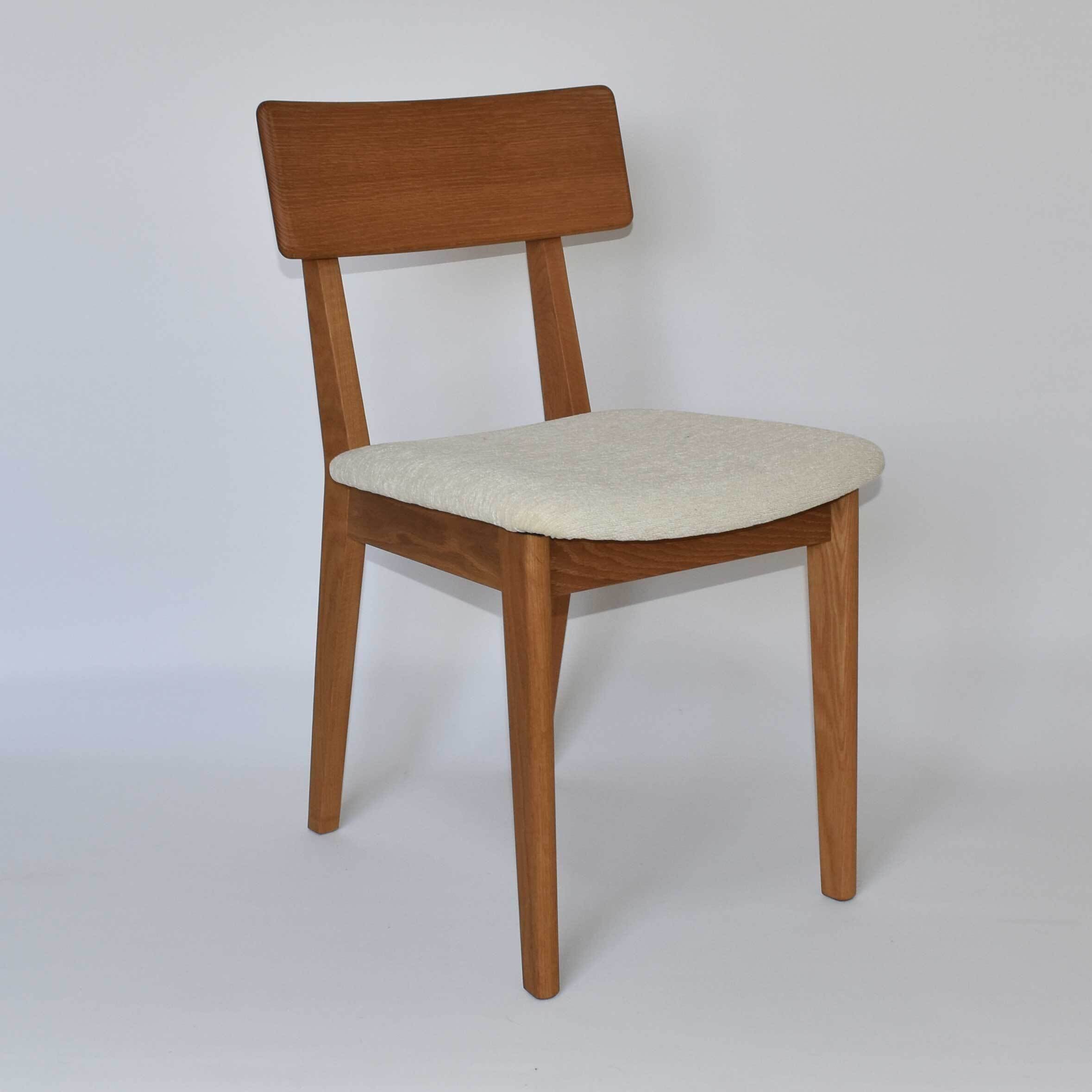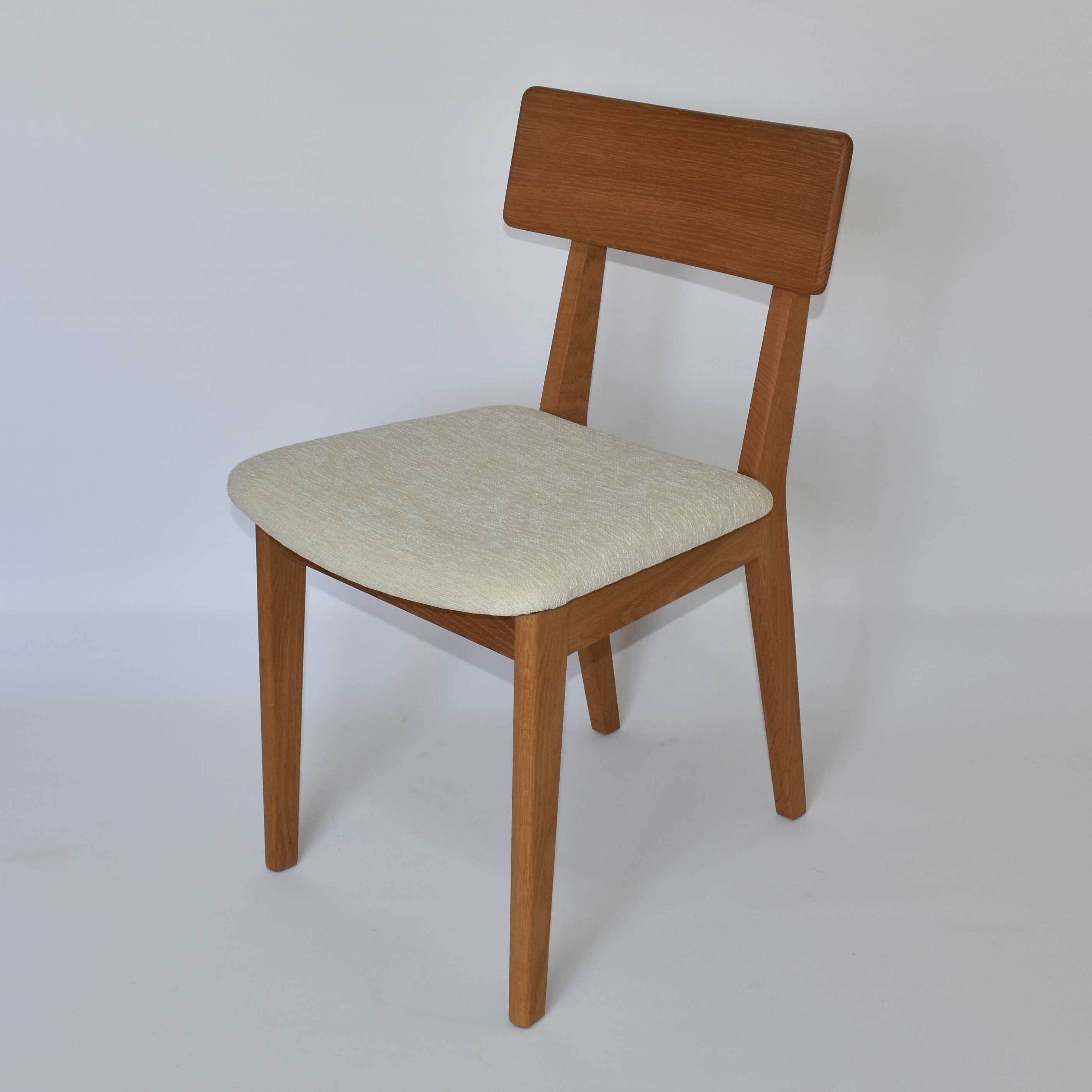 軽快でポップなデザインの椅子です。日本の職人手作りの品ですがお求め易い価格が魅力です。小ぶりですがダイニングチェアー、パーソナルチェアーどちらにもお似合いです。画像の白ファブリックのお品のみ在庫ございます。その他はファブリックご指定後の受注製作になります。お届けに30~45日程度のお時間がかかります。