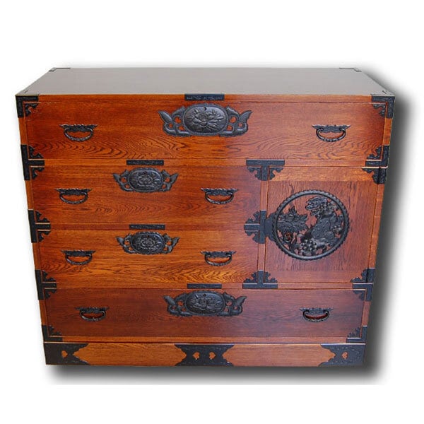 漆の和箪笥 楢無垢材 拭き漆仕上げ