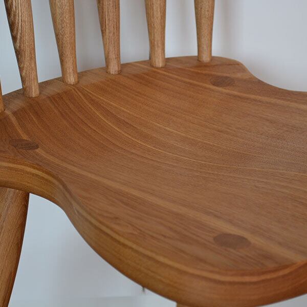 座面は40mmのタモ厚板から削り込んだ座り心地の大変よい椅子です。
