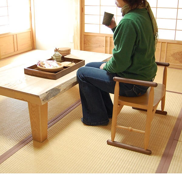 デザインが優れた座椅子です。畳部屋の座卓で使用するのに便利な畳椅子。畳摺りの脚は畳を傷めず、高めに付いた手摺で楽に立ち上がれます。軽いので移動もラクです。ご年配の方や脚に負担をかけたくない方々から多くの支持を頂いています。