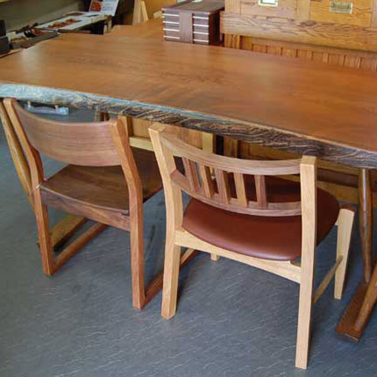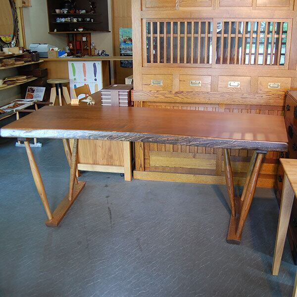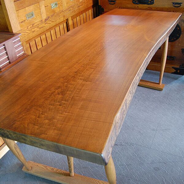 北海道産、栓の一枚板のテーブルです。30年程工房で寝かしておいた板で、良く乾燥し落ち着いた良質な一枚板です。
