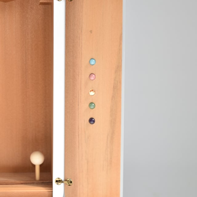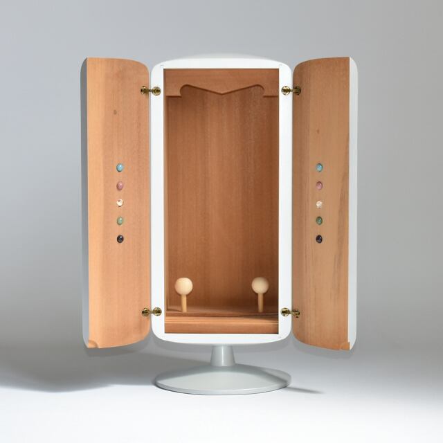 天然木を素材に使い、パールホワイトに仕上げたインテリア厨子です。観音様、仏像、マリア像、お札、位牌など、特に用途を決めておりませんので、お祀りする対象はお客様のご自由でよろしいと思います。