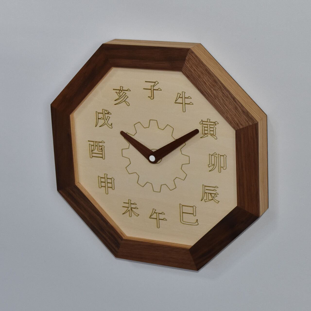 風水では八角形は気を調整し運気をあげてくれる作用があると言われ、新築祝い、医療関係者への贈り物、飲食店の開店祝いなどに最適です。大変軽量なので、石こうボードの壁面にピンで掛ける事が出来ます。ムーブメントは静音タイプです。単三電池1本で可動します。