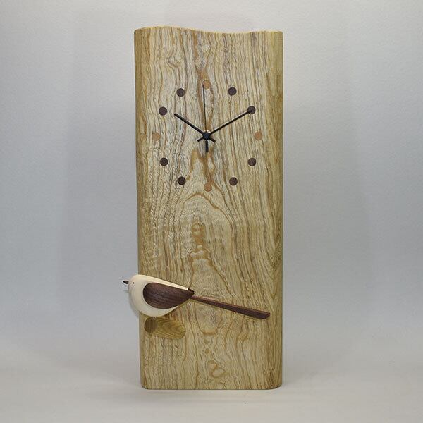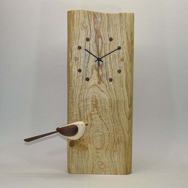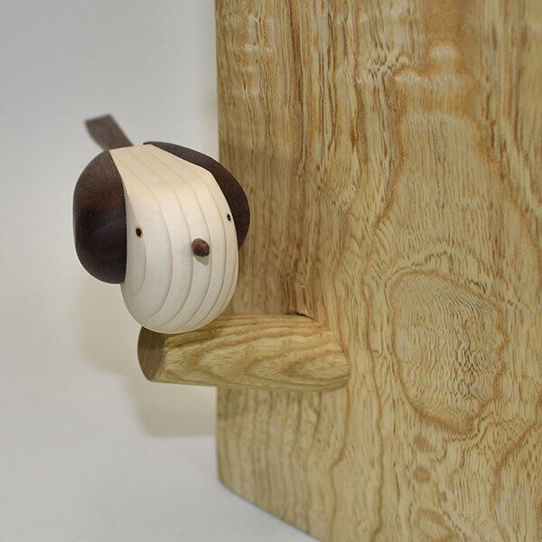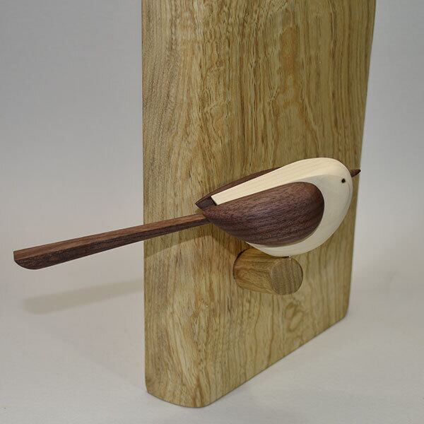 エナガの体にエゾマツを、羽と尾っぽにウォールナットを使い、天然木の色をアクセントにしたナチュラルな仕上げが素敵です。